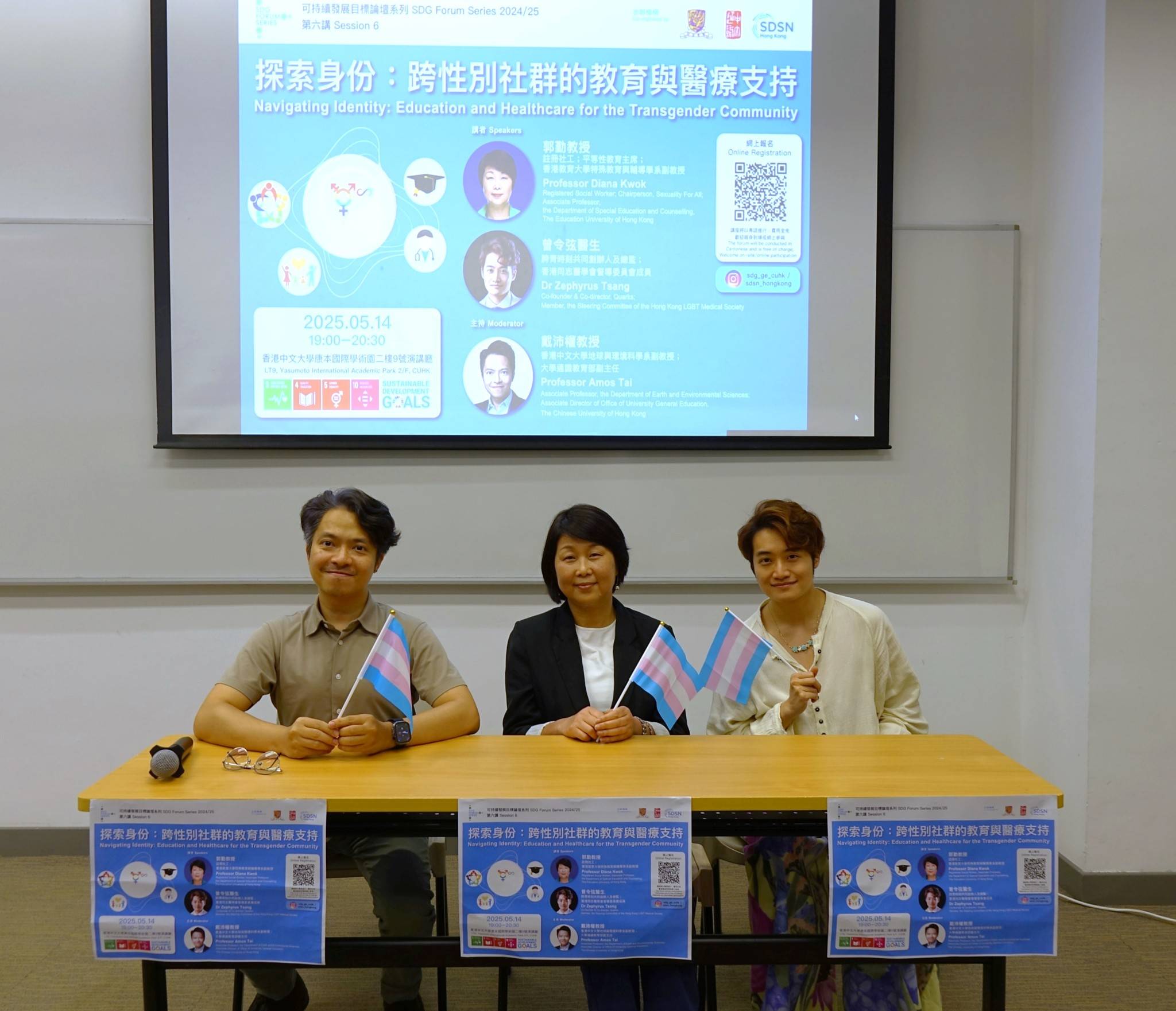 The forum ‘Navigating Identity: Education and Healthcare for the Transgender Community’, part of CUHK’s SDG Forum Series, was held in May 2025, and focused on the challenges and support for the transgender community in education and healthcare. The speakers included a professor presenting a case study on school support for a transgender secondary school student, and a transgender doctor sharing his personal journey and advocating for inclusion in healthcare. They discussed challenges faced by the transgender community, and emphasized the importance of equal rights and dignity in education and healthcare.