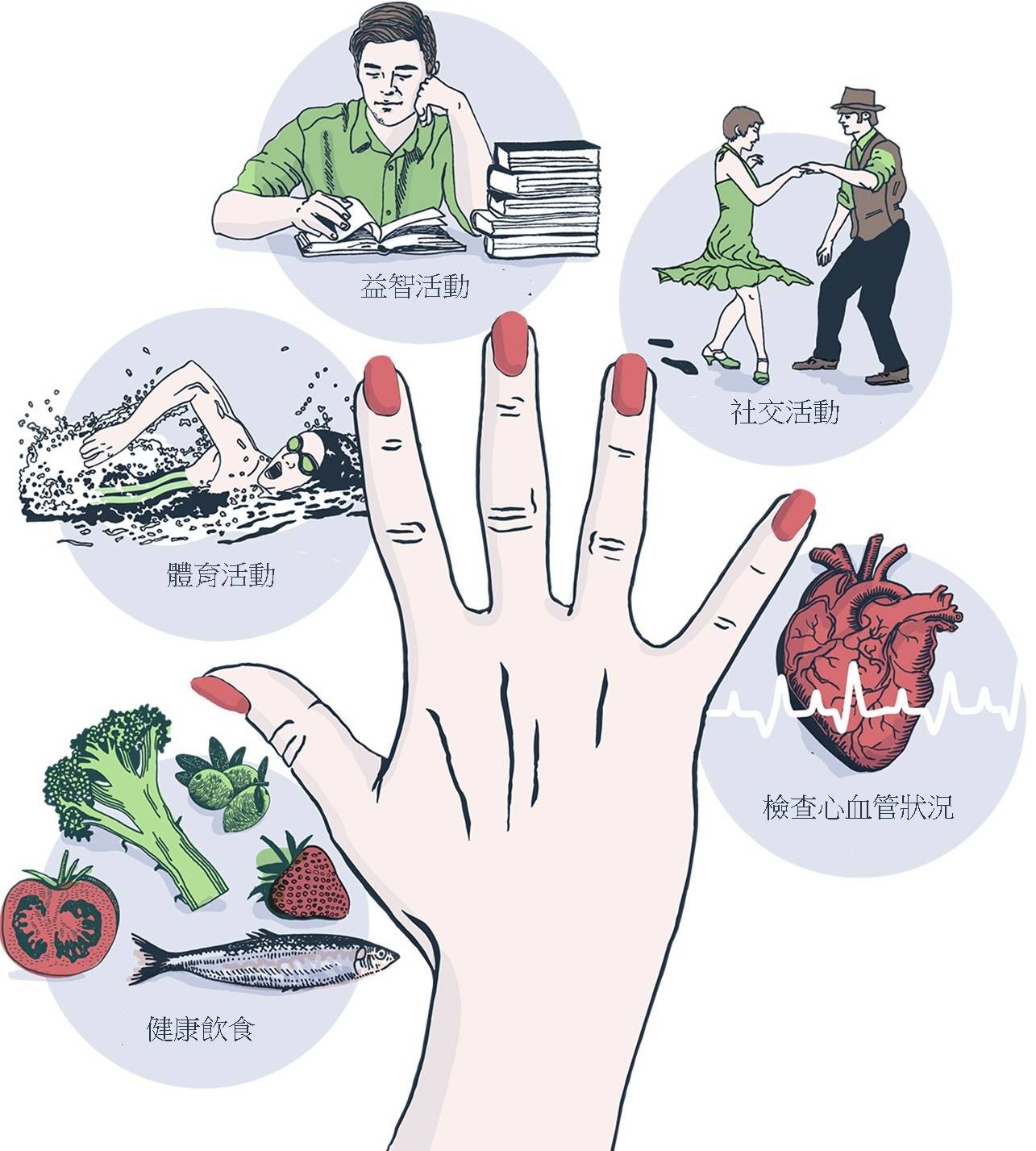 芬兰一项研究计画FINGER(芬兰老年医学介入研究:认知损伤与失能的预防)显示,在不同层面改善生活方式,可以改善大脑健康,预防认知能力衰退(来源:Miia Kivipelto and Mai-Lis Hellénius)
