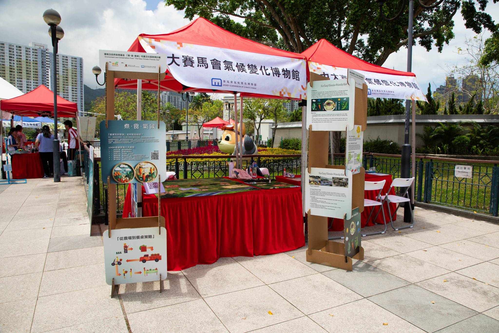 In May 2025, the Jockey Club Museum of Climate Change (MoCC) at CUHK partnered with the Amity Foundation for the 15th Walk for Living Water Walkathon and Living Water Carnival. This initiative sought to raise funds and increase public awareness for water‑scarce communities, highlighting the urgency of addressing global water inequality. As part of its contribution, the MoCC hosted an education booth featuring ‘The Easy Climate-Friendly Diet’ exhibition and the ‘Cut Carbon Farm’ augmented reality (AR) game. Through interactive games and informative displays, the exhibition prompted participants to reconsider the relationship between dietary choices, water consumption and climate change, encouraging the adoption of more sustainable lifestyles.